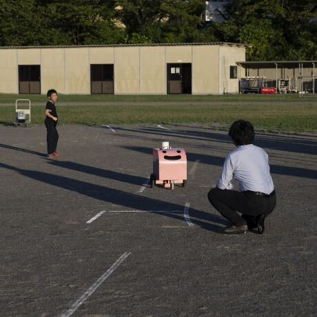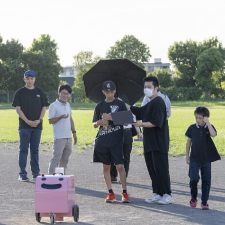 ロボットはゆっくり動くし、地面の状態で少しズレちゃうこともあって、思った通りの位置に線が引けるかドキドキしました。でも自分の書いた『ュ』が他の文字と並んだときにちゃんとつながって見えたので、「やった!」って気持ちになりました。文字の形だけじゃなくて、全体のレイアウトを考えるっていうのも、すごく楽しかったです。