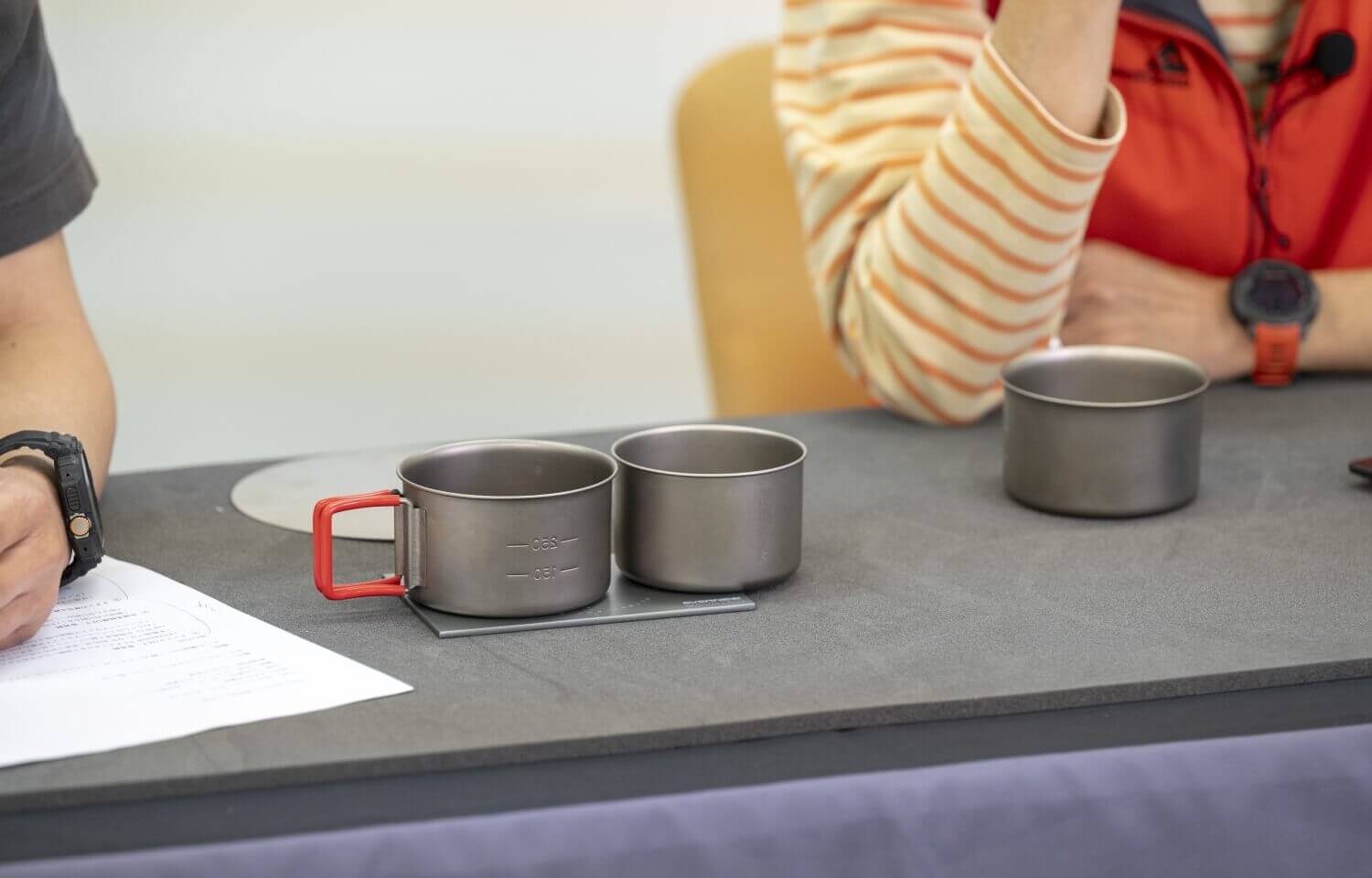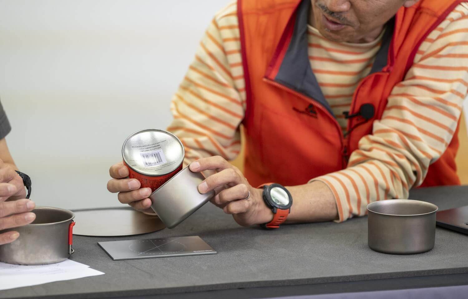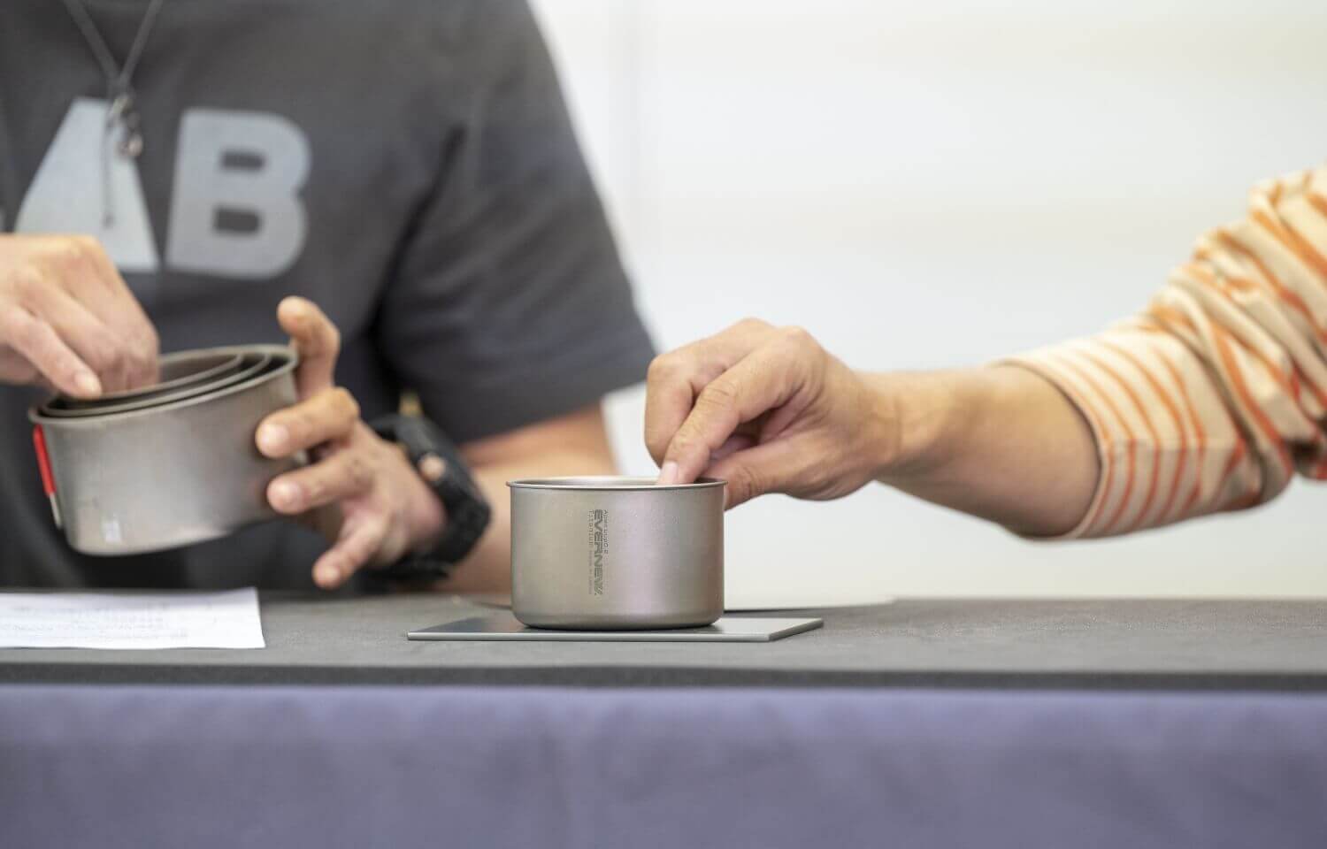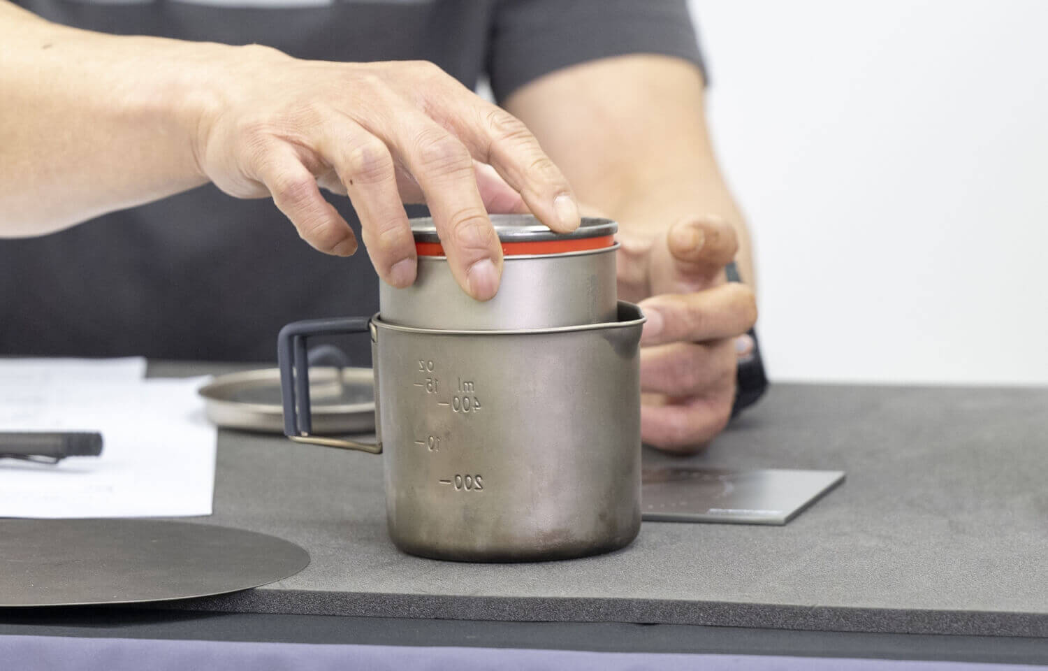チタンカップ開発を始めた頃はエバニューから職人さんに「チタンでカップを作ってくれないか」と挑戦状を投げたわけですが、30年近くで何百万とチタン加工をしてきた中で、もっと薄いものも加工できると、0.2mm厚チタンは職人さんからの投げかけられた逆挑戦状だったんですよ。