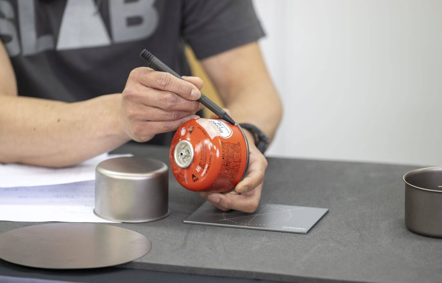 試行錯誤しながら、日帰り登山などで良く使われる「110サイズのガスカートリッジ(以下:OD缶)」に着目しました。コロナ禍のキャンプブーム時に金属製のOD缶カバーが出てきて、私は疑問を感じていたのですが、そこから妄想が膨らみ「これだ!密着だ!」と感じました。