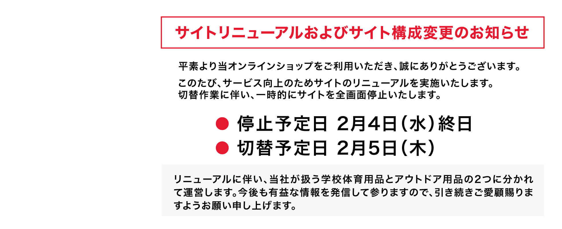 サイトリニューアルおよびサイト構成変更のお知らせ